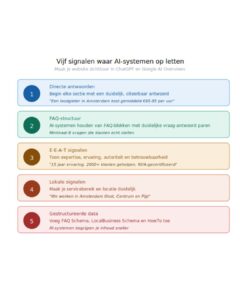 AI-zoekmachines zijn slimmer dan traditionele Google. Ze zoeken niet naar zoekwoorden, maar naar vijf concrete signalen.